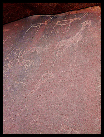 Le site de Twyfelfontein compte quelques 2500 gravures réalisées dans le grès rouge. |
