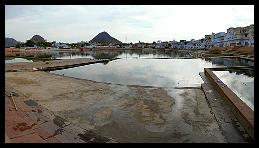 Ville de pèlerinage pour les hindous, Pushkar tire son nom d’une légende. Elle est associée à Brahma, le Créateur, qui tua un démon avec un lotus. Les pétales tombèrent sur terre en trois endroits où apparurent des lacs. Pushba désigne « la fleur » et kar « la main ». Le tour du lac est bordé par les ghat (les marches) construites par des rois ou des nobles. |